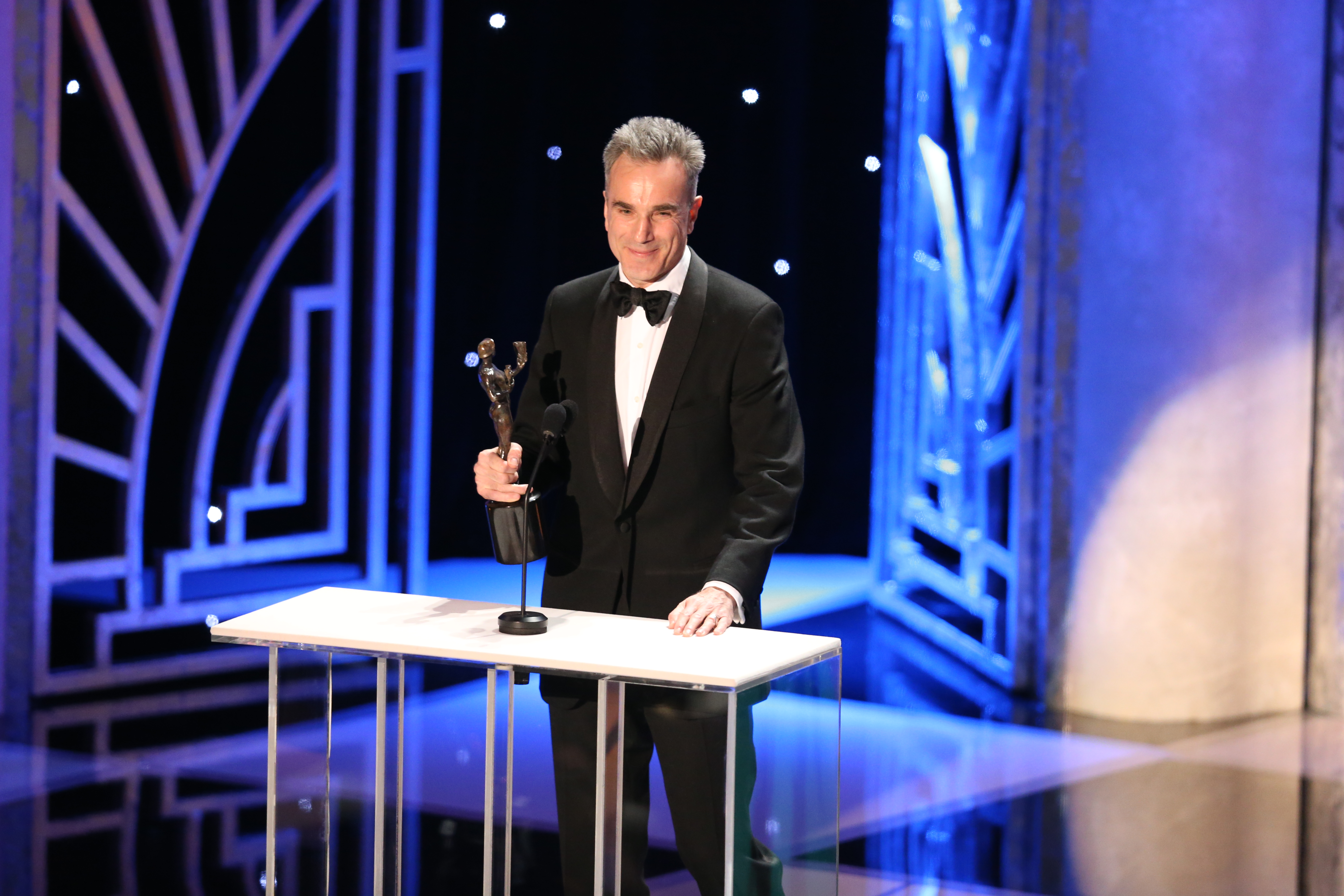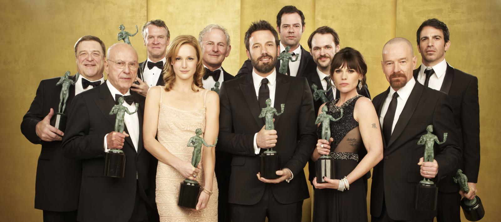 As the Awards’ have done since the first show, the ceremony began with a number of “Actors Stories” — this year, seven of them — followed by the presentation of 13 awards for the year's outstanding performances in film and television. It was Alec Baldwin’s happy duty to present to SAG-AFTRA’s highest honor, the Life Achievement Award, to song-and-dance man and humanitarian Dick Van Dyke. To salute the recent merger of Hollywood’s two powerful entertainment unions into the new SAG-AFTRA, Co-Presidents Ken Howard and Roberta Reardon introduced a historical film compilation, while Jessica Chastain introduced an "In Memoriam" montage honoring just some of the many who passed away in 2012. Jude Law announced the evening’s last prize: outstanding performance of a cast in a theatrical motion picture.